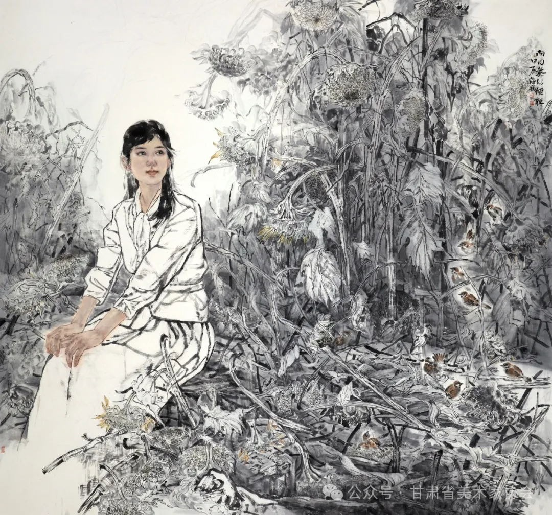 《向日葵的倾听》中国画 180×190cm 2024年