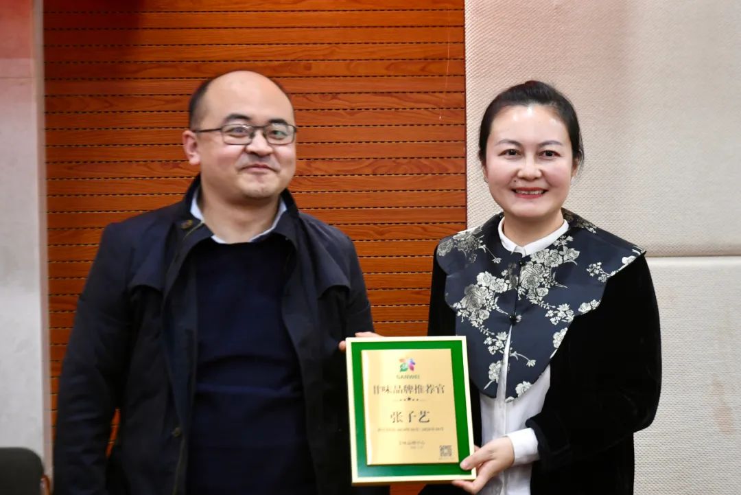 活动中,甘肃农业出版传媒有限公司总编辑刘国华给张子艺颁发了“甘味推荐官”证书。