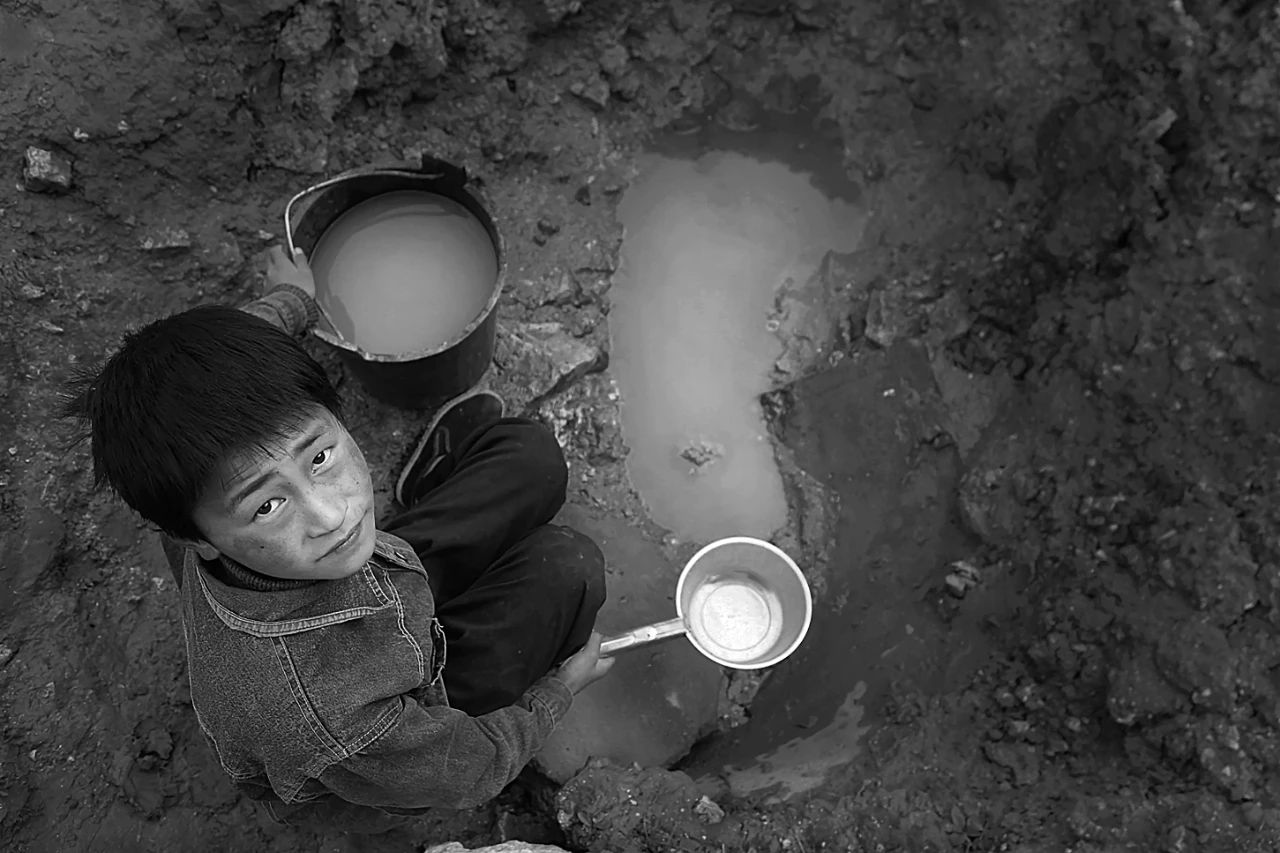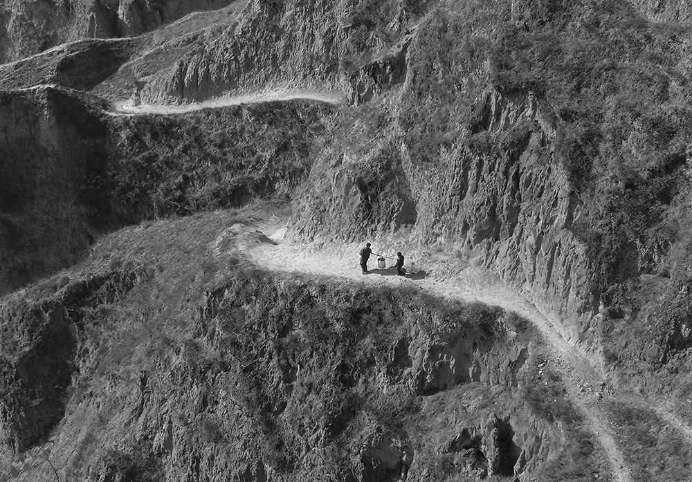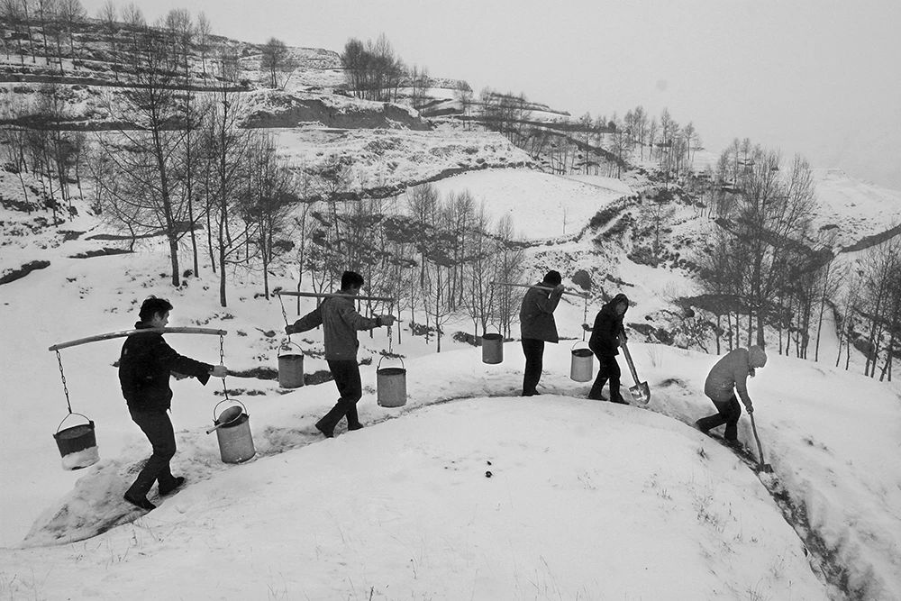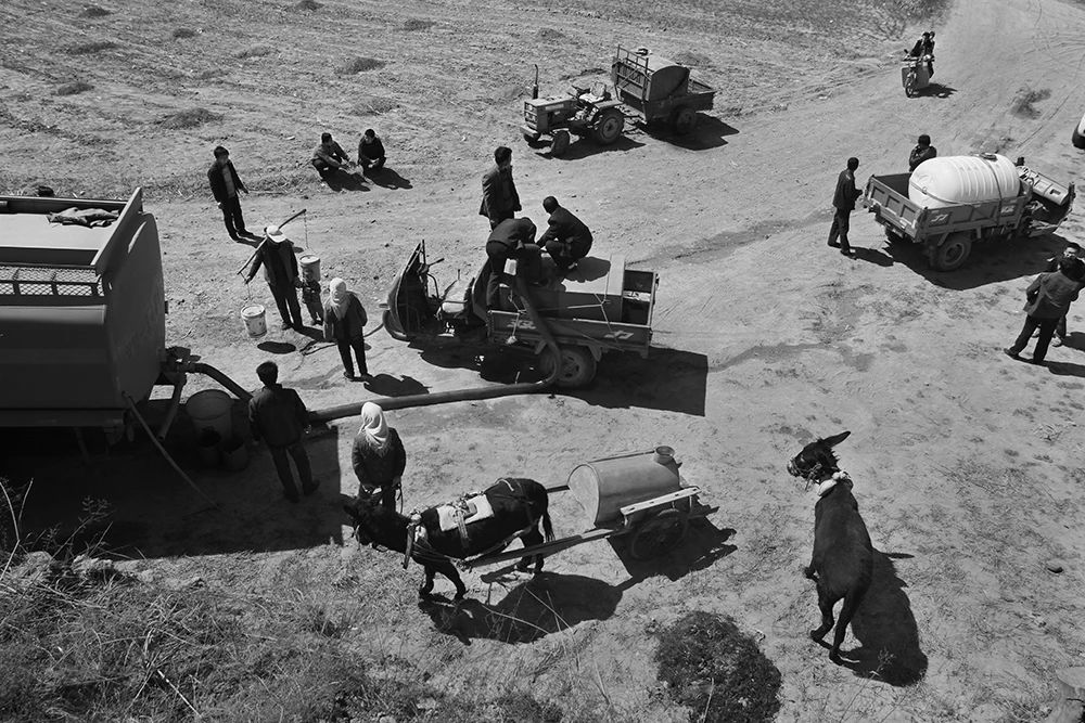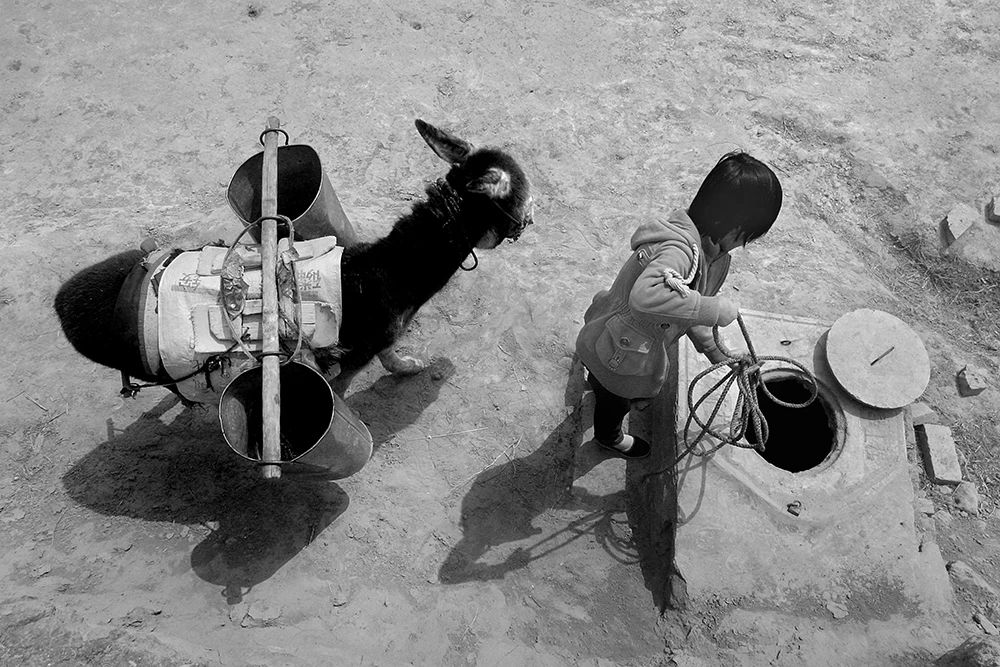 后来,我有一个梦想,就是长大一定要帮助村里打一口水井。好多年过去,儿时的取水路,常常会浮现在我的眼前。2000年6月,甘肃省华池县、环县发生50年来最严重的旱情,我被派往村子去采访,到达现场,我被眼前庄稼干枯、到处都是孩子和村民提着水桶等待送水车来送水的场景惊呆。此情此景,让我油然而生想起我的童年取水之路,瞬间一种使命感和责任感,激励我用相机去记录拍摄他们。