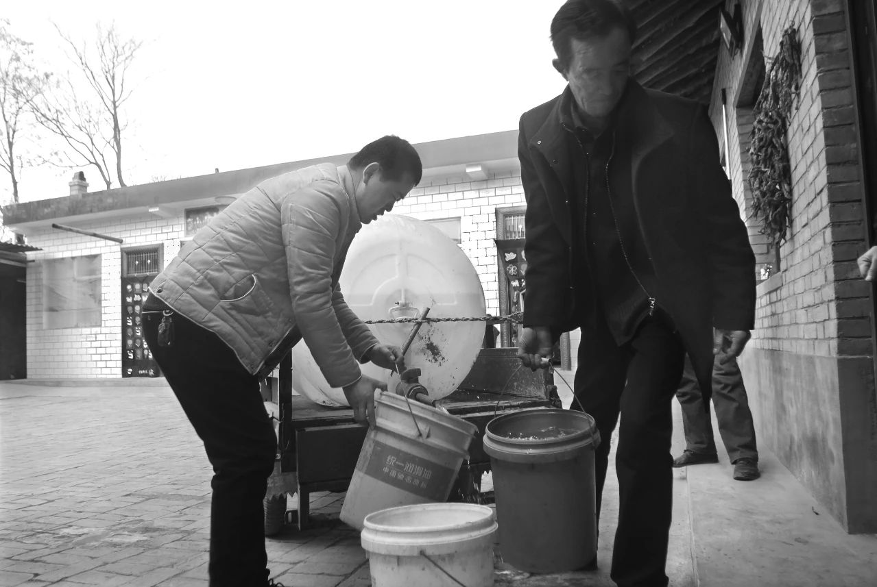 2016年02月11日,甘肃省正宁县榆林子镇小寺头村,村民在机井前给水桶装水。
