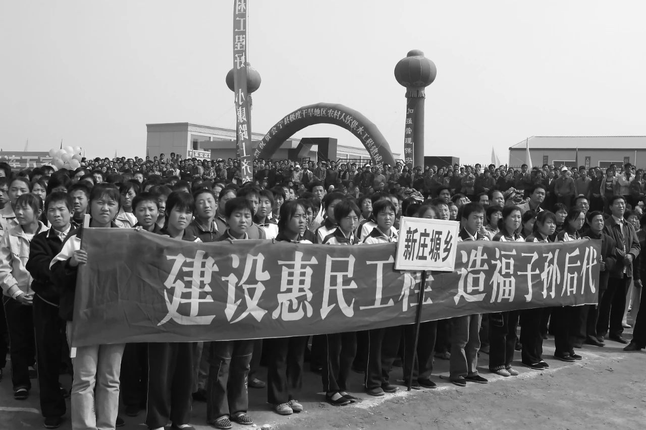 2007年09月25日,甘肃省会宁县,当地村民和学生参加“会宁县极度干旱地区人饮供水工程暨新堡子农村饮水安全供水工程”通水仪式,该工程解决了村民多年吃水难的难题。